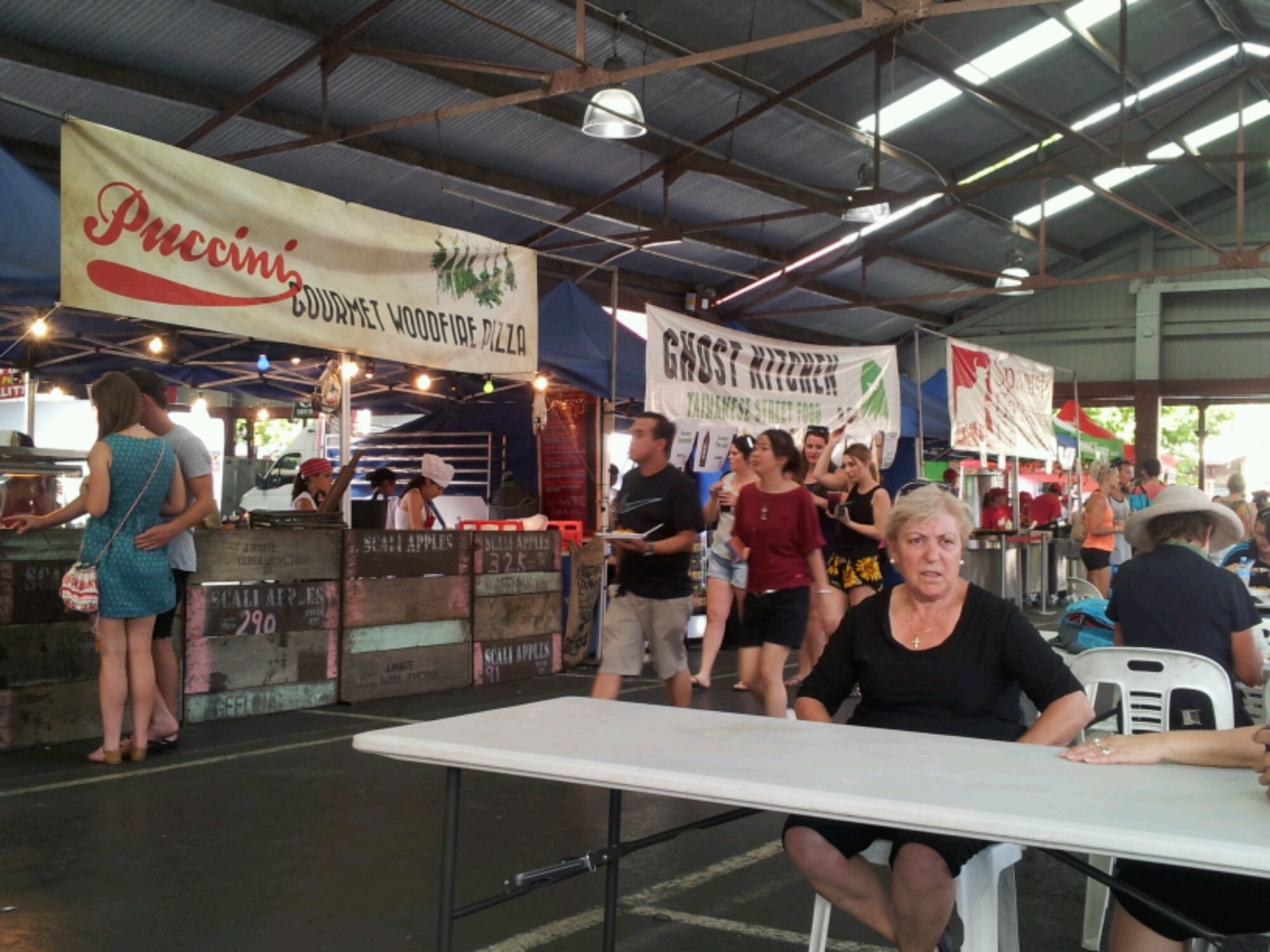 Erst steht jedoch der zweite Teil der Great Ocean Road auf dem Programm. Es gibt nicht solch spektakuläre Ausblicke wie vorgestern. Dafür schlängelt sich die Straße direkt am Meer entlang, von Bucht zu Bucht. Durch die Gewitterstimmung sieht alles etwas verzaubert und silberfarben aus. Die Temperatur steigt trotz Wolken stetig und als wir Melbourne erreichen, sind es wieder 40 Grad. Da wir unsere Koffer nicht vom Flughafen in die Stadt transportieren wollen, fahren wir mit dem Auto quer durch die Stadt zum Hotel. Es funktioniert wunderbar. Schnell einchecken und feststellen, dass es freies WiFi gibt 🙂  und auf geht es zum Flughafen. Das Auto ist schnell abgegeben und da wir Zeit haben, fahren wir nicht direkt für 17 AUD in die Stadt, sondern für kleines Geld mit den normalen Öffentlichen. Das dauert etwas länger, spuckt uns aber dennoch an unserem ersten Ziel, dem Queen Victoria Night Market aus. Night ist hier übrigens alles, was nach 17.00 Uhr beginnt oder noch andauert. Geschäfte schließen im Regelfall um 17.00 Uhr, Sehenswürdigkeiten auch, wenn nicht gar noch früher.