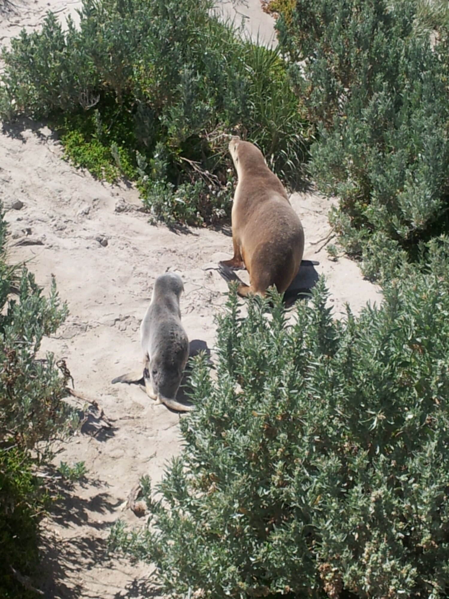 Als erstes steuern wir Emu Bay an, der schönste Badestrand der Insel. Bis wir dort sind ist vom blauen Himmel nichts mehr übrig und Christophs Wunsch, endlich im Meer baden zu gehen, bleibt weiterhin unerfüllt. Es ist wirklich ein herrlicher Strand, viele Boote im Wasser, einfach perfekt – bei anderem Wetter. Als es anfängt zu regnen, fahren wir nach Kingscote, unsere Einkäufe machen. Als wir den Supermarkt wieder verlassen, sieht die Welt schon besser aus.