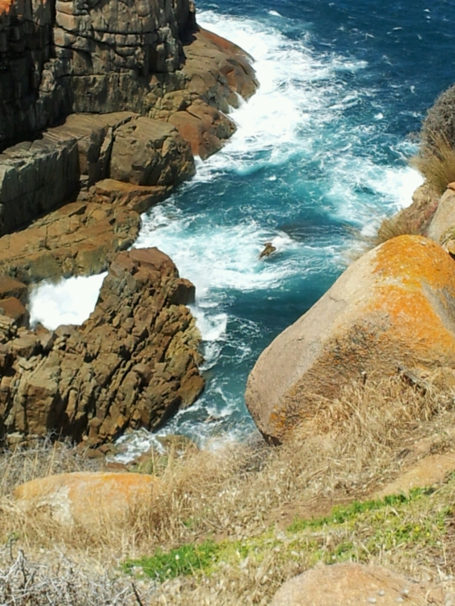 Von da aus erkunden wir die Dudley Peninsula und kommen an den bisher windigsten Punkt der ganzen Reise – Cape Willoughby. Ein netter Leuchtturm, aber vor allem perfekte Ausblicke auf das unter uns brodelnde Meer.
