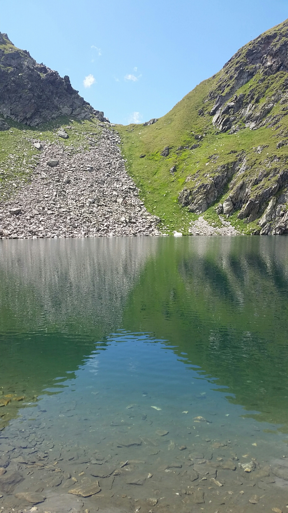 Nach wenigen Minuten erreichen wir den Grindlberger See, an dem wir nach 5 Stunden Gehzeit endlich rasten. Ab hier sind es 1.500 hm im Abstieg, die es noch zu bewältigen gibt. Aber alles halb so wild, es ist bis zur Oberen Engbergalm ein toller Steig. Dort gibt es eine Erfrischung und wir kämpfen uns weiter tapfer bergab.