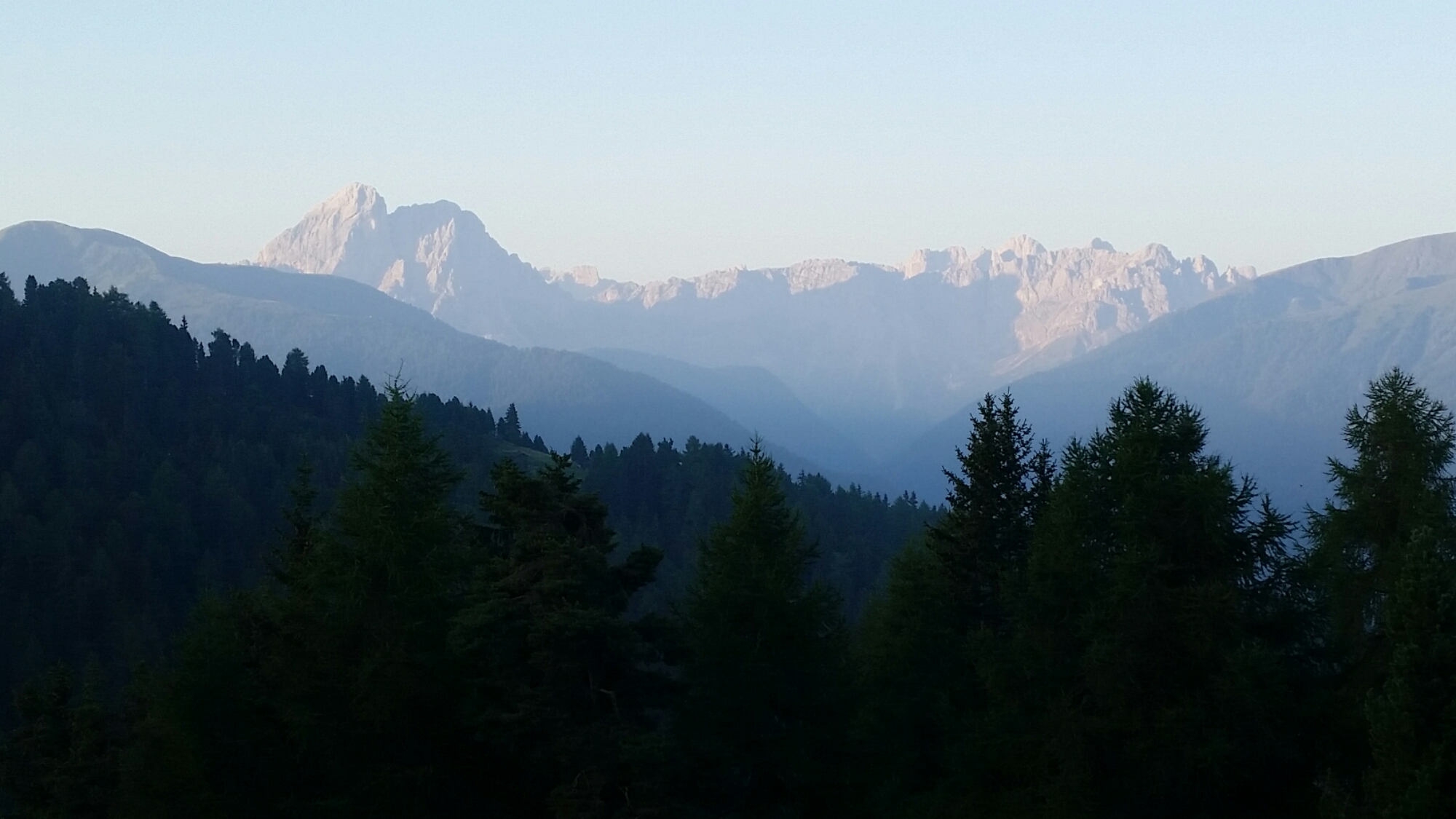 Das Almfrühstück war sensationell, aber so richtig genießen konnte ich es nicht. Ich war nicht sicher, wieviel Zeit ich zum Würzjoch brauche und da es erst ab 7.00 Uhr Frühstück gab, hatte ich bis zur Abfahrt des Busses am Würzjoch nur 5:30 Stunden und 6:20 waren angegeben. Dann kam der Abschied von Lucia, mit der ich in den letzten Tagen Höhen und Tiefen anstrengender Etappen durchgemacht habe. Sie bleibt noch einen Tag auf der Alm und steigt dann aus und macht noch für ein paar Tage Südtirol unsicher.