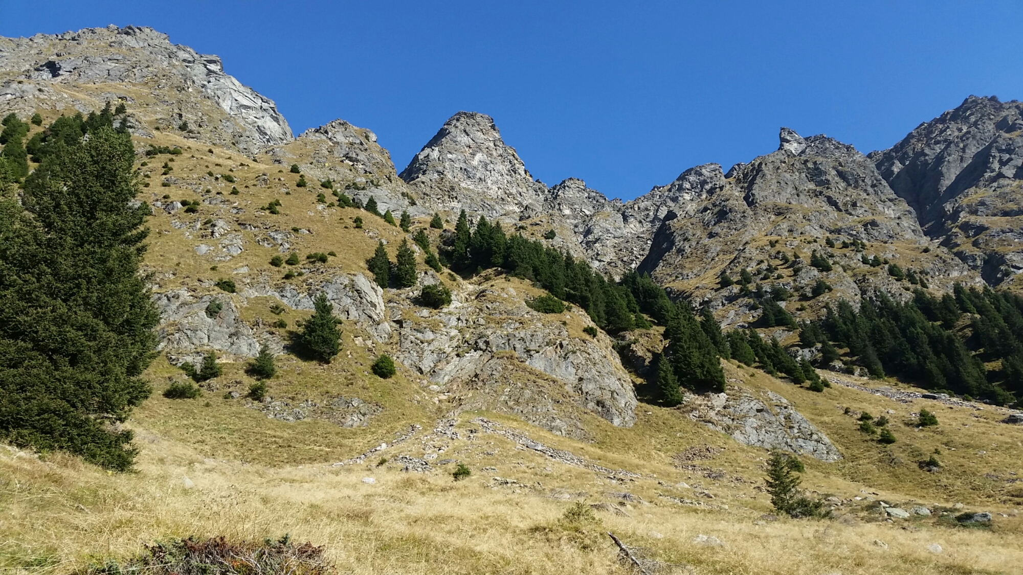 Erst über Almwiesen, dann treppenartig über Blockwerk und letztlich in ewigen Stufen winden wir uns in Serpentinen hinauf zur 2.455 m hohen Hochgangscharte. Hier oben pfeift es empfindlich, dennoch machen wir eine längere Pause. Der Blick hinunter ins Etschtal ist perfekt.