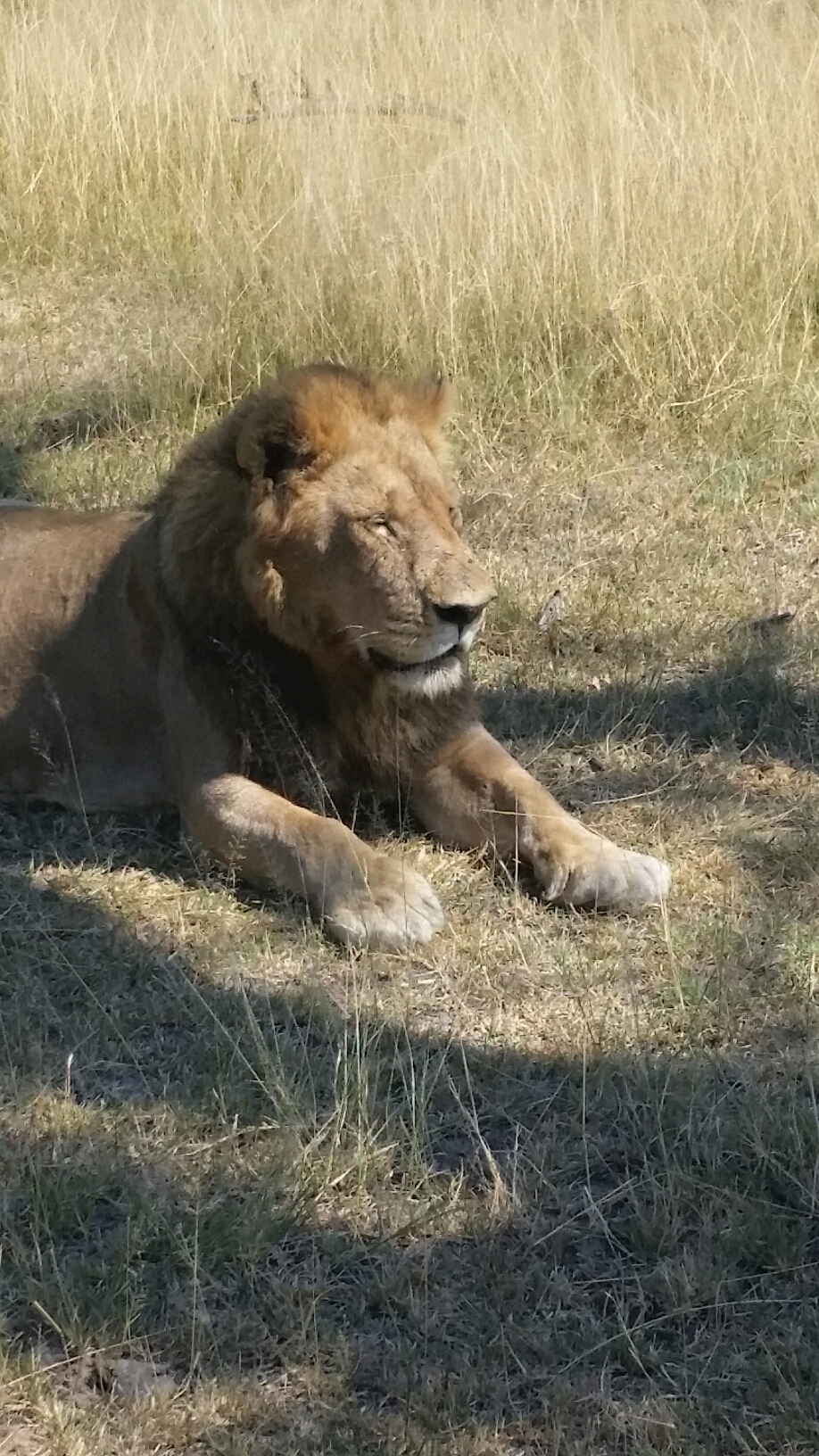 Wir schauen nach, ob unsere Löwen noch an der Stelle von heute morgen schlafen. Ja, sie tun es unverändert. Die Bäuche sind voll, Feinde gibt es nicht, was sollen sie sonst machen….