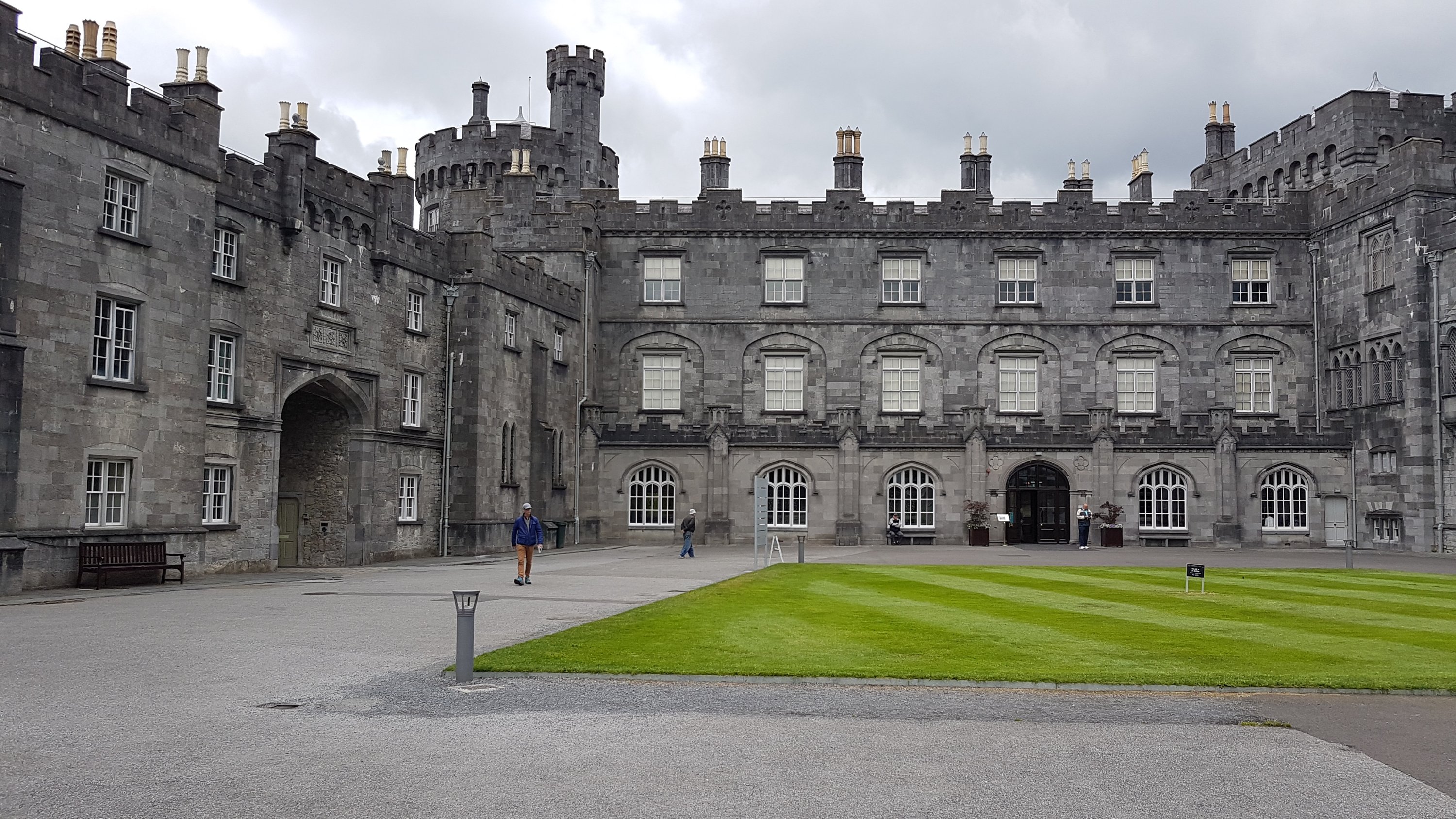 Heute Morgen heißt es Abschied nehmen von unserem Cottage und dem Fleckchen hier unten im Südwesten der Insel. Das Wetter hilft dabei – es ist grau. Wir fahren auf der N71 mehr oder weniger nah der Küste entlang in Richtung Cork. Dabei können wir noch den einen oder anderen Blick auf das Meer erhaschen und sehen noch einige hübsche Dörfer am Wasser. Von Cork geht es in kurzer Zeit nach Kilkenny, was durch eine völlig andere Landschaft geprägt ist. Es gibt hier viel weiniger Weidewirtschaft, jedoch sind viele Getreidefelder zu sehen. Die Stadt selbst ist quirlig und bunt.