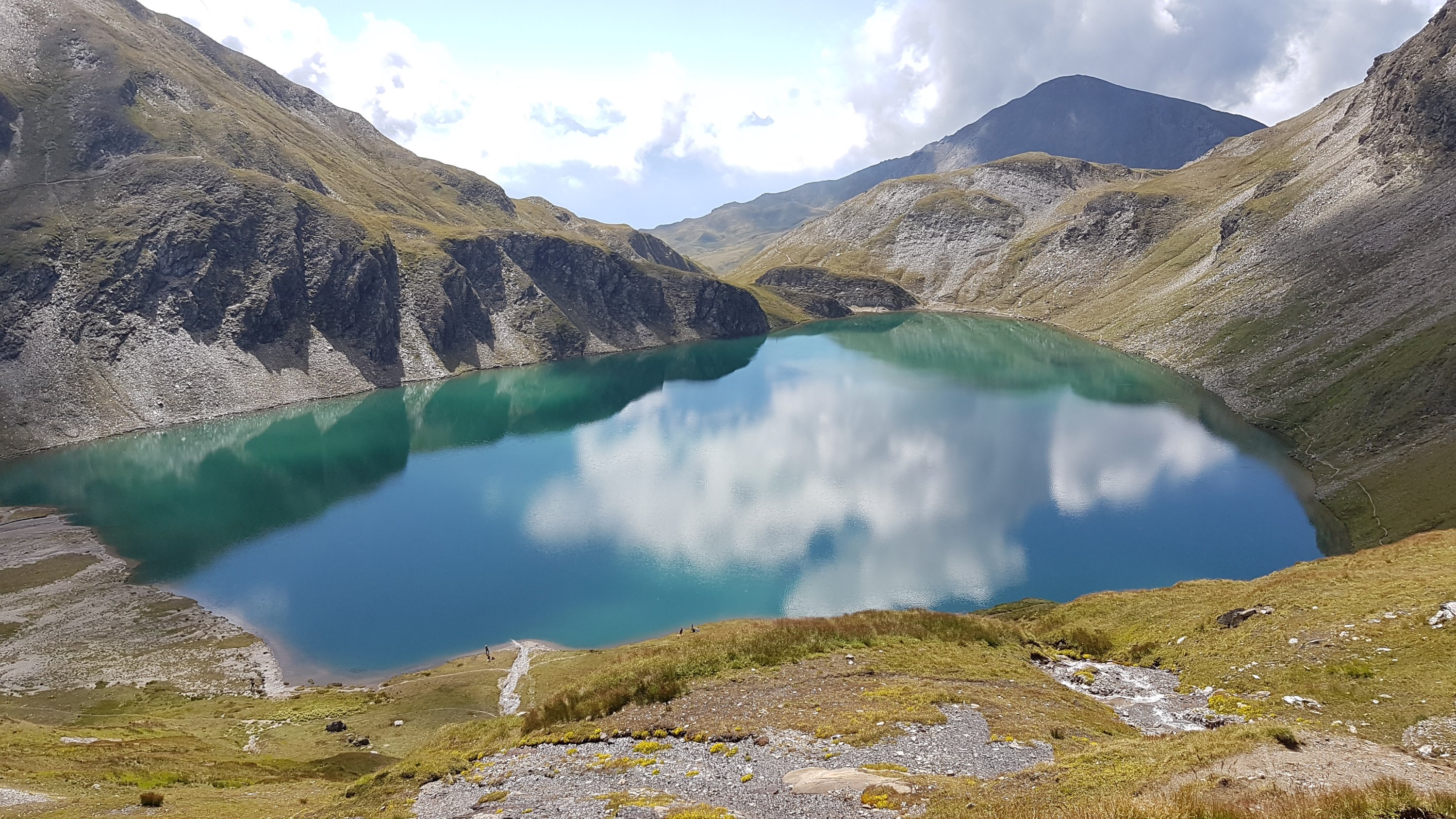 Am Wilde See geht meine bessere Hälfte allein mit den Ziegen weiter und ich warte. Am Sengesjöchl kann ich ausmachen, dass er mit jemandem spricht und dann wieder zurück kommt – ohne Ziegen. Die Hirtin war bereits auf der Suche. Deswegen war ich wohl der „Geißen-Peter“. Denn dem Mann im Duo sind sie auch nur mit meinem Rucksack gefolgt. Jedenfalls gehörten sie dort, wo wir sie aufgegabelt haben, auch nicht hin. Die haben sich wohl schon früher von der Herde verabschiedet.