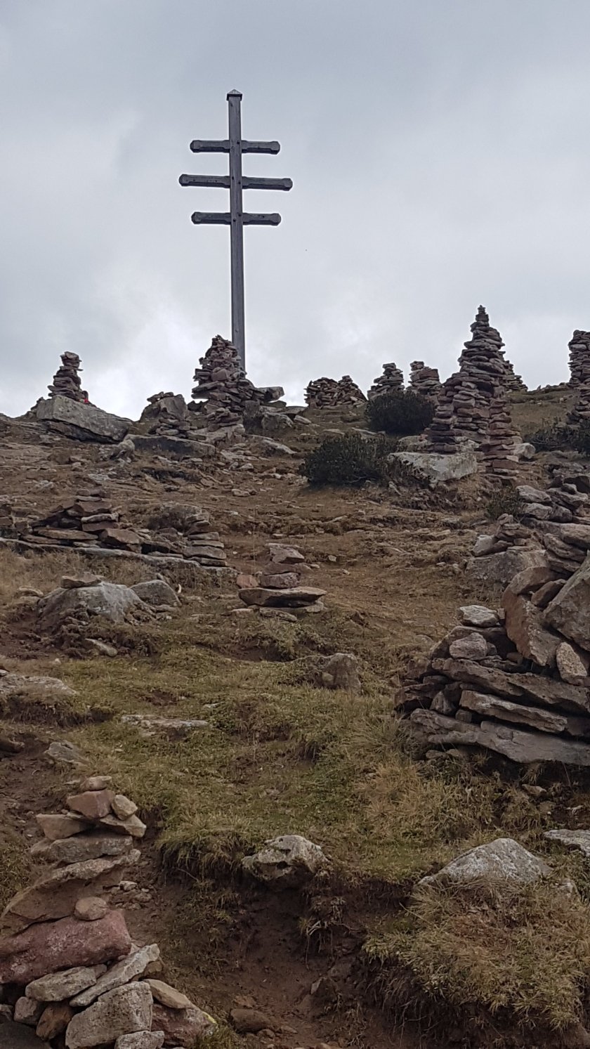 In knapp 20 Minuten haben wir die letzten Höhenmeter überwunden und stehen in Mitten mehr oder weniger größer stoanernen Mandlen. Ein ganzer Berg voller Steinmännchen. Auch wir helfen, dass es immer mehr werden. Der versprochene 360 Grad Panoramablick bleibt uns verwehrt. 360 Grad nur Wolken, hellgraue und dunkelgraue. Bei gutem Wetter wäre das hier ein wahrer Aussichtsbalkon.