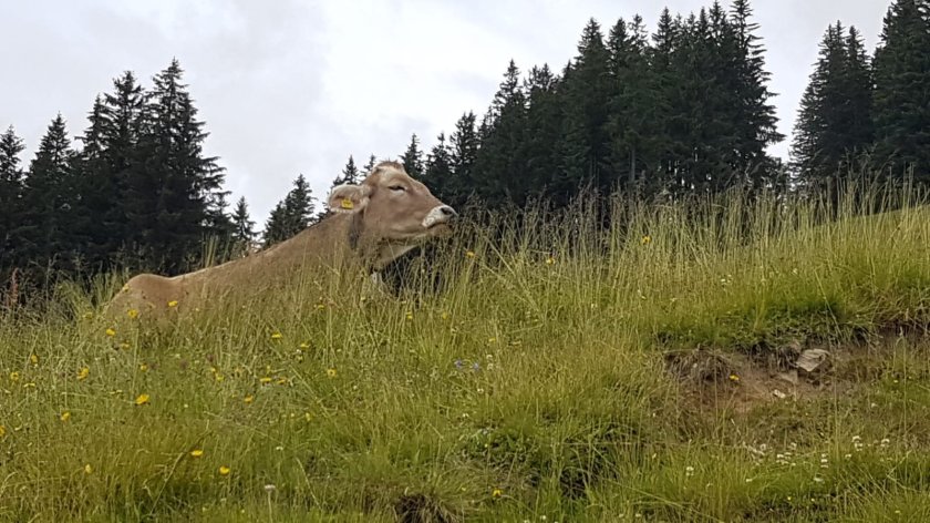 Nach der Alpe kommt der letzte kurze Anstieg des Tages und wenig später mündet unser Weg auf den Anstiegsweg ein. Auf diesem geht es zur Buchel Alpe und von dort ins Tal zurück.