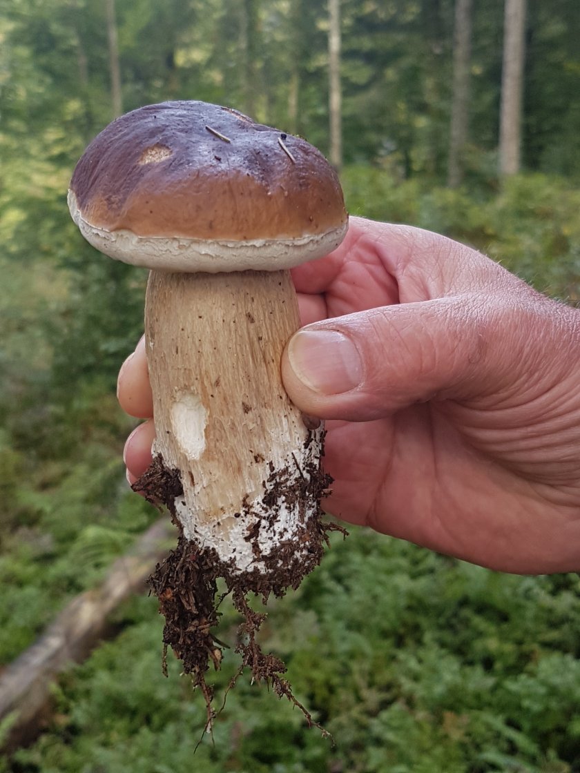 Der Rückweg verläuft auf dem Anstiegsweg und ab jetzt schweifen die Blicke nicht mehr in die Ferne. Beim Laufen wird der Wald rechts und links abgesucht. Erfolgreich für fast alle – es gibt Steinpilze und davon nicht zu knapp. Wunderbar, dass die meisten noch in ganz hervorragendem Zustand sind. Ein gefundenes (Fr)Essen.
