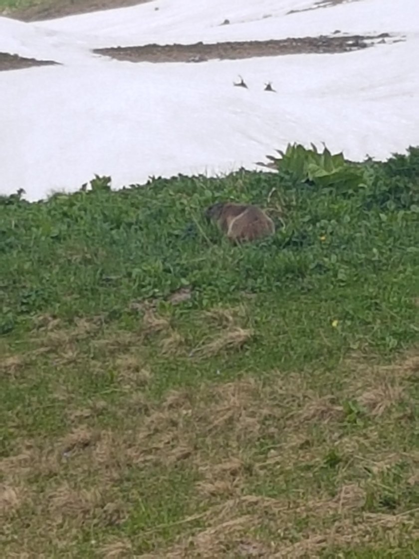 Erst liegen noch ein paar große Schneefelder im Weg, dann schlendern wir gemütlich. Auf der Gappenfeldscharte zeigt ein Wegweiser jedoch auch hinunter zum Vilsalpsee. Das machen wir doch glatt. Den Weg zum Neunerköpfle kennen wir, daher steht diese Möglichkeit der Männerroute (umgekehrt gelaufen) und wir steigen hier ab. Ein schöner Steig, aber es ist ziemlich warm und es reicht irgendwie für heute. Wie immer gibt es in solchen Situationen Lichtblicke. Heute sind es plötzlich auftauchende Murmeltiere. Mit etwas Geduld und Ruhe kommt man in fotografierbare Nähe.
