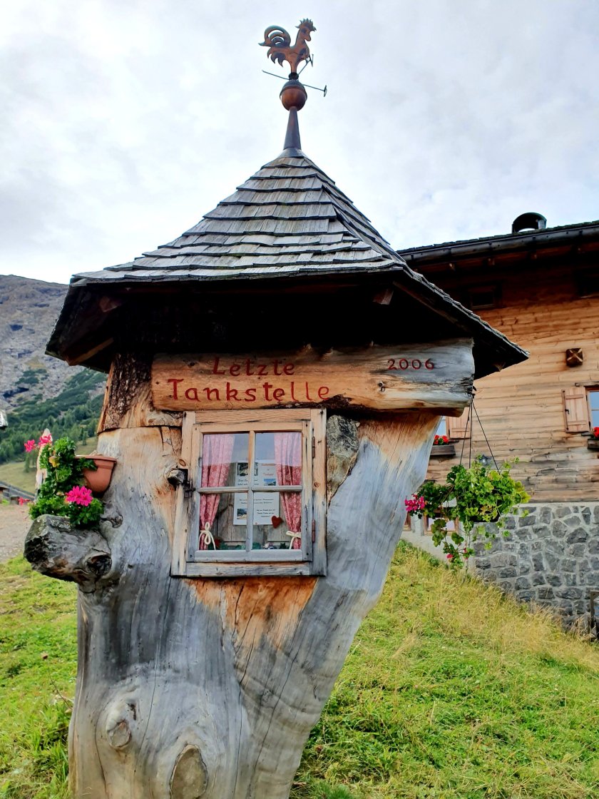 Pünktlich 7.30 war ich beim Frühstück. Das war richtig gut und von allem, was es auf den meisten Hütten nicht gibt, war reichlich da. 8.15 war ich fertig zum auschecken, nur leider ist die Rezeption erst ab 9.00 Ihr besetzt. Hätte ich lesen können – steht in großen Lettern da!!! Also erst zum Bäcker, etwas Proviant kaufen und dann geduldiges Warten. Sie kam wirklich Schlag 9.00 Uhr. Gut, dann geht es also mit einer halben Stunde Verspätung los. Gemächlich schweben die runden Gondeln nach oben. Das Wetter ist – entgegen der Vorhersage – noch weit weg von schön. Aber es ist trocken.