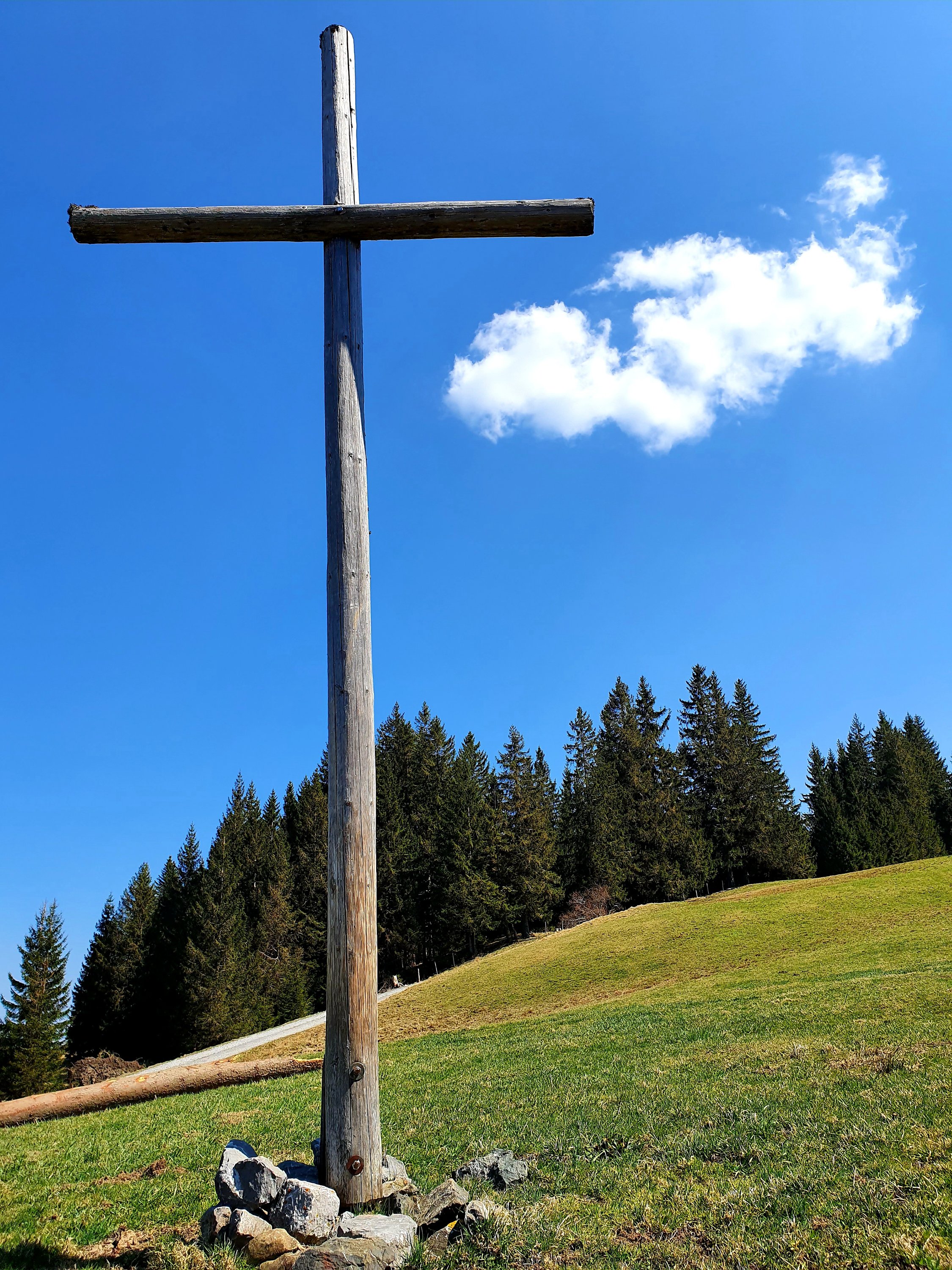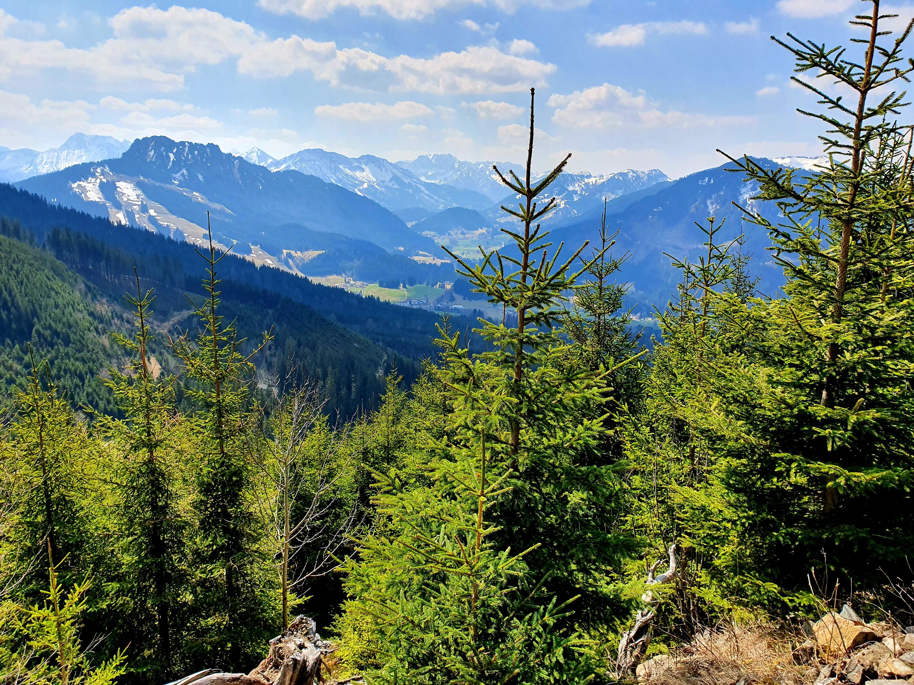 Da die Möglichkeiten zur Zeit nicht so vielfältig sind, probieren wir ein paar Tage später die nächste Variante. Dieses Mal nehmen wir den Abstiegsweg und steigen gemächlich durch den Wald zur Haslacher Alpe auf. Es ist wieder ein herrlicher Tag und wir sind ganz allein.