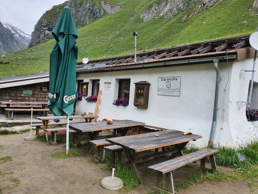 Es war eine überaus weise Entscheidung, dass wir das Umbalkees gestern bereits in Angriff genommen haben. Die zeitliche Komponente war uns bewusst. Nachdem wir jedoch die wolkenverhangene Morgenstimmung an der Clarahütte in Augenschein nehmen, wissen wir, dass die erträumte Morgenstimmung am Gletscher nichts mit der Realität zu tun gehabt hätte.