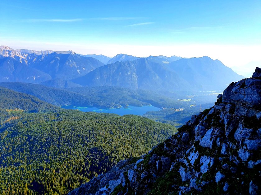 Am Ende des Kars kann man ein paar Meter fast geradeaus gehen. Für mich eine gute Gelegenheit, für einen kleinen Snack und den Blick auf den Eibsee.
