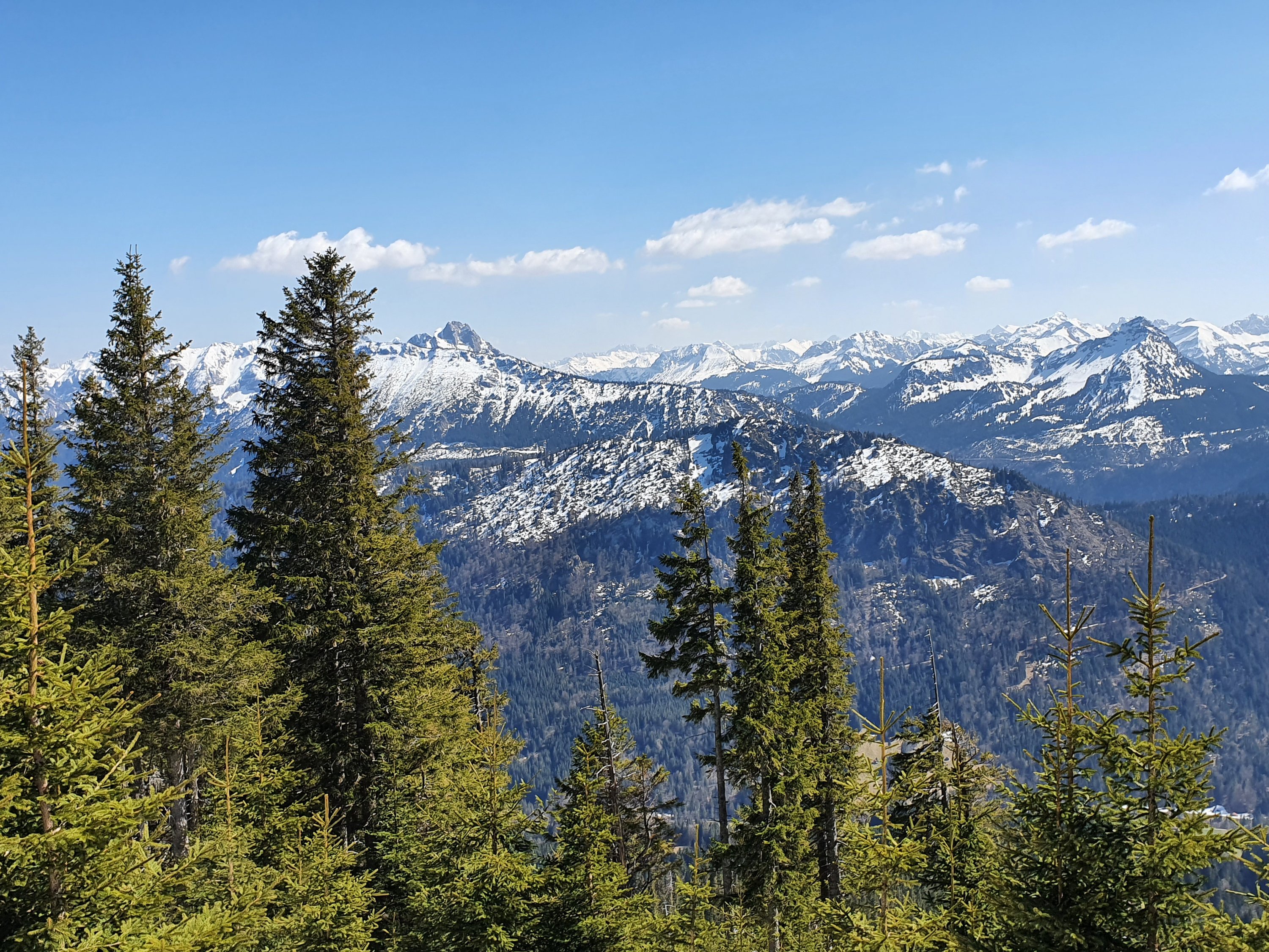 Also Kuchen rein und ein neuer Versuch. Ich steige auf dem Anstiegsweg wieder zu einer Senke ab und von dort hinauf zum Alpspitz. Hier liegt fast kein Schnee mehr und es ist trotz einiger Menschen sehr leise am Gipfel. Der Ausblick ist nicht ganz so schön, aber hier kann ich etwas genießen und in Stille schauen.