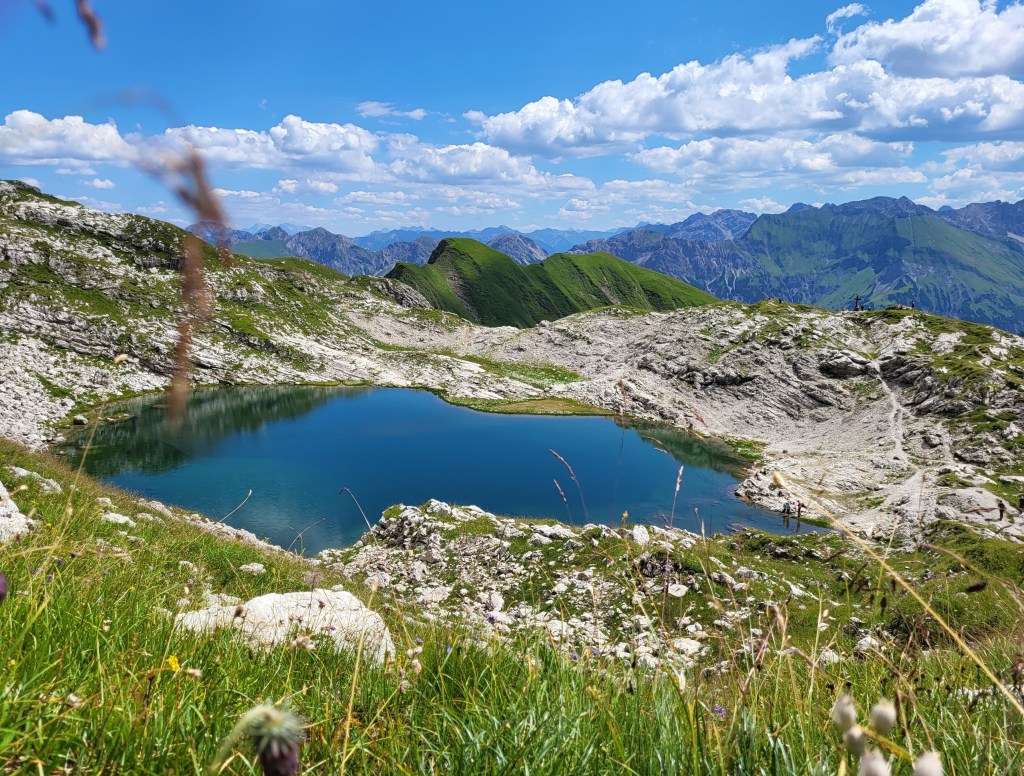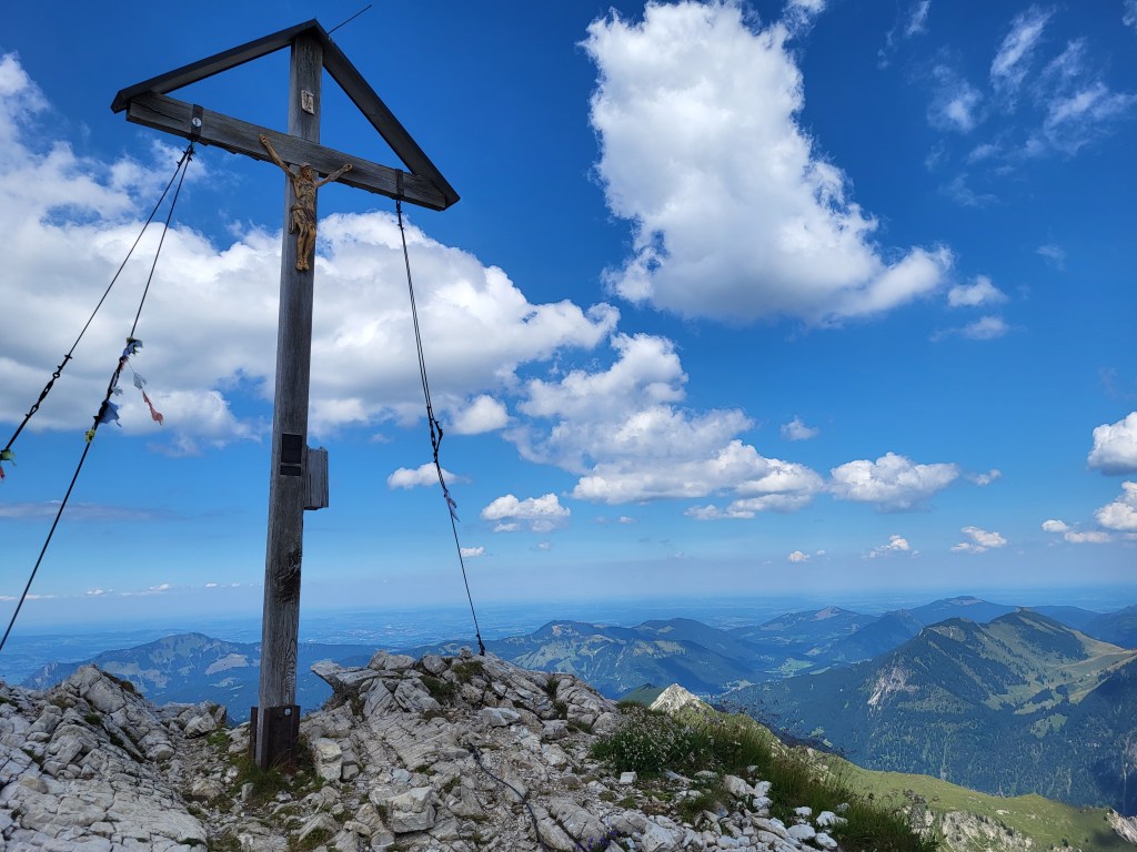 Besser wäre es gewesen, die Tour früher zu starten, idealerweise außerhalb der Ferien, bei weniger Hitze, da sie doch trotz der wenigen Höhenmeter nicht zu unterschätzen ist. Dennoch eine wunderbare Wanderung, deren Ausblick ihresgleichen sucht. Und mit einem leckeren Stück Kuchen in Oberstdorf gibt es auch für die hochsommerliche Variante einen wunderbaren Abschluss.
