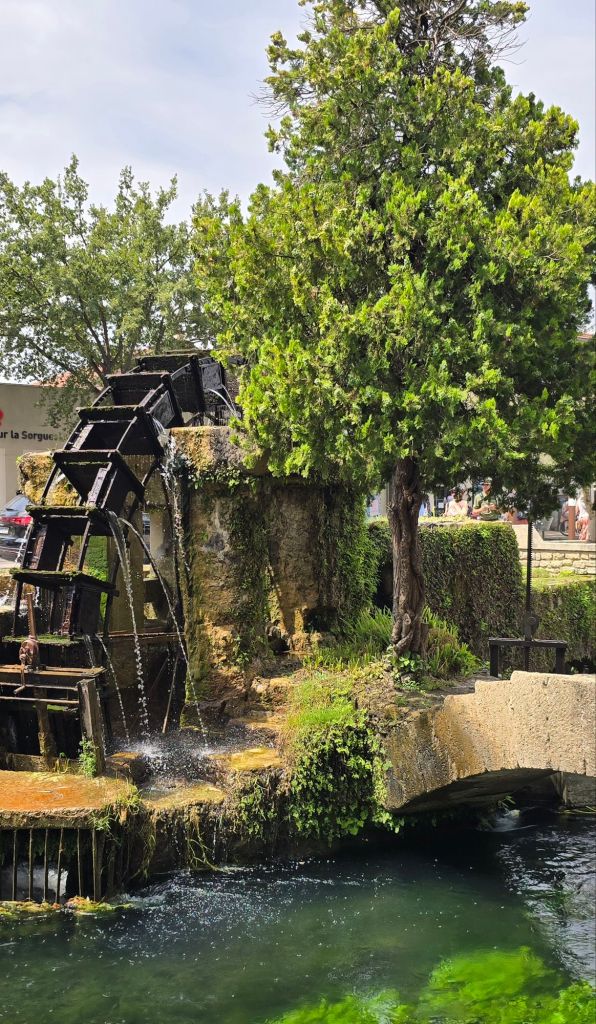 Wir laufen auf dem kombinierten Rad-/Fußweg aus Velleron hinaus und durch die Felder nach l’isle sur la Sorgue. In einer guten Stunde sind wir da und von der Ruhe plötzlich mitten im Treiben.