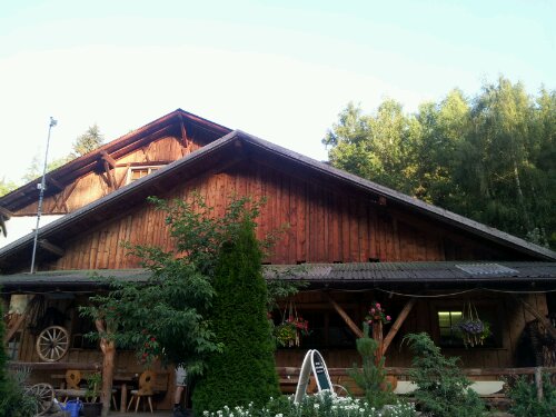 Dann geht es über Wiesen und durch Wälder weiter steil ab nach Piller. Wir wissen, dass unsere Herberge, die Ranch Neu Amerika, 10 Minuten außerhalb von Piller liegt. Die Frage ist nur, von welcher Seite betrachtet. Christoph, von der im Tal deutlich spürbaren Hitze auch etwas genervt, geht sicherheitshalber zweimal fragen.