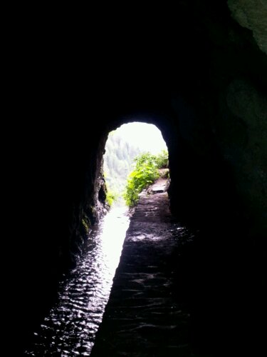Plötzlich kommt uns ein Licht entgegen. Mir war ja so schon mulmig, aber das ist schon fast unheimlich. Es war letztendlich ein sehr freundlicher Mann, der auf der Gallruttalm Wasserproben genommen hat und auf dem Rückweg war. Wir haben die Wasserfassung passiert und sind kurz danach wieder draußen. Aller Angst zum Trotz, ohne überfallen oder weggespült zu werden. Wegelagerer und Ganoven kommen nur in Filmen oder in der Phantasie vor.